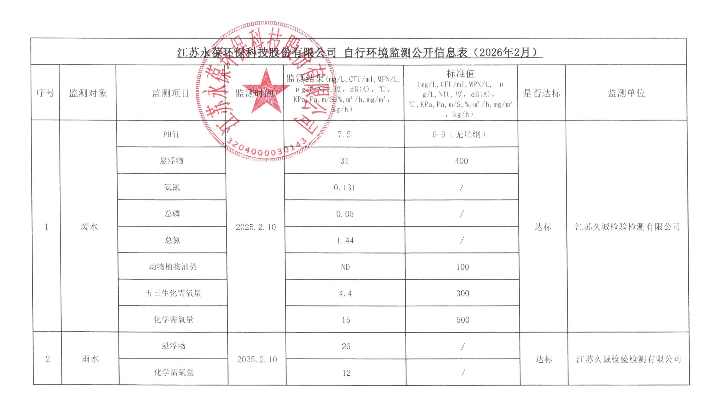 » 江苏永葆环保自行环境监测公开信息